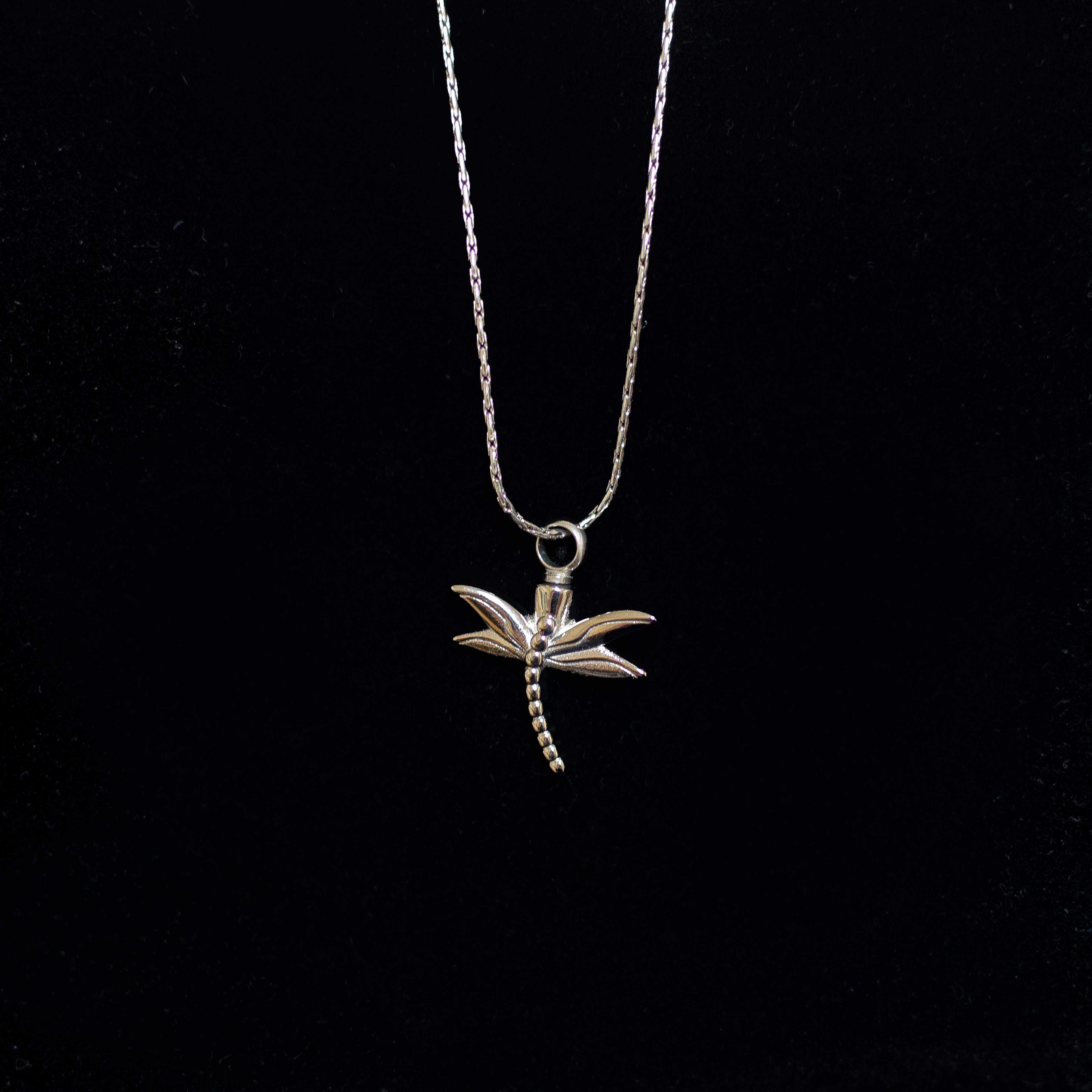 J1900-30161 Legend says that the second set of wings found on dragonflies carry the angel sent to you. It has a Stainless Steel chain that is 21" long.
